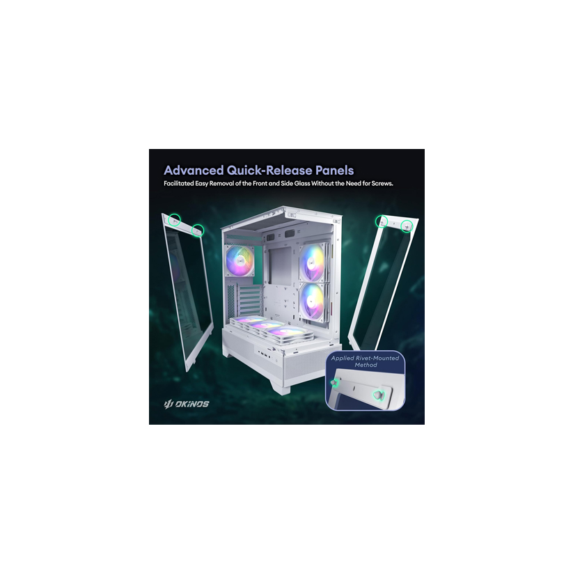 • 【Synchronized Dual-Channel Airflow Design with 3 X H12 Reverse PWM ARGB Fans at the PSU Chamber and 2 X H12 Reverse PWM ARGB Fans at the Side】Carefully designed vertical and horizontal airflow channels. At the top of the PSU chamber, experience the intricately crafted vertical airflow path with 3 x H12R PWM ARGB reverse fans, ensuring efficient heat dissipation. Meanwhile, the lateral side showcases the horizontal airflow channel, achieved by 2 x H12R PWM ARGB reverse fans and 1 x H12 PWM ARGB fan at the rear;