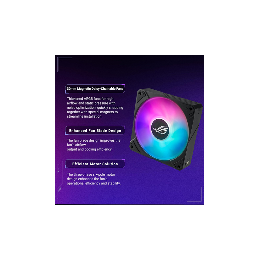 • Thickened ARGB fans for high airflow and static pressure with noise optimization, quickly snapping together with special magnets to streamline installation