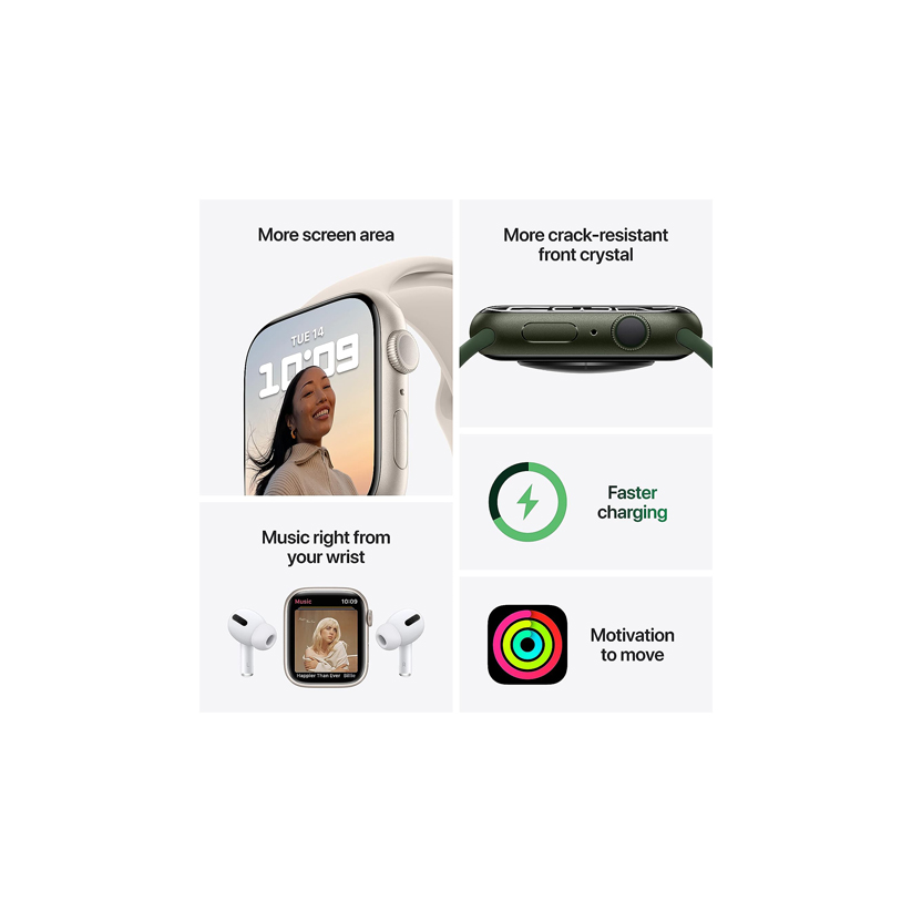 WHY APPLE WATCH SERIES 7 — The most advanced Apple Watch features powerful health innovations like sensors and apps to measure your blood oxygen and take an ECG. The larger, Always-On Retina display makes it easier to use and read. The most durable Apple Watch. Charges faster so you can get going quicker.